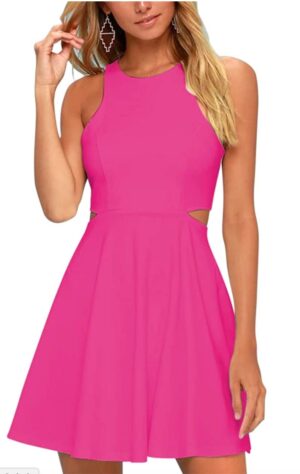 [ezcol_1half_end class=”shopping-content”]I have this one in pink, which I wore on Valentine’s Day this past year – got SUCH a cool open back! For a fun, flirty option, this one has got the swing, the neckline, and the back to beat!